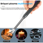 Briquet USB rechargeable avec tuyau flexible 360°, sécurisé et polyvalent, pour bois, bougies, plaques de gaz et barbecues, intérieur et extérieur.