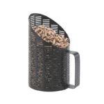 PULSE – Pelle à granulés en acier noir givré avec tamis intégré, poignée ergonomique, contenance 1 kg.